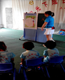 我们上屯幼儿园已有10多年的历史了,从一开始的几十个孩子到现在的几百个孩子,我们不仅加盟了蒙氏数学和口才,这次我们打算加盟“千字童”。我们想让大山里的孩子不用出大山就能学到大城市的先进教学方法。抱着这个初始的想法,我们有了去千字童的冲动。